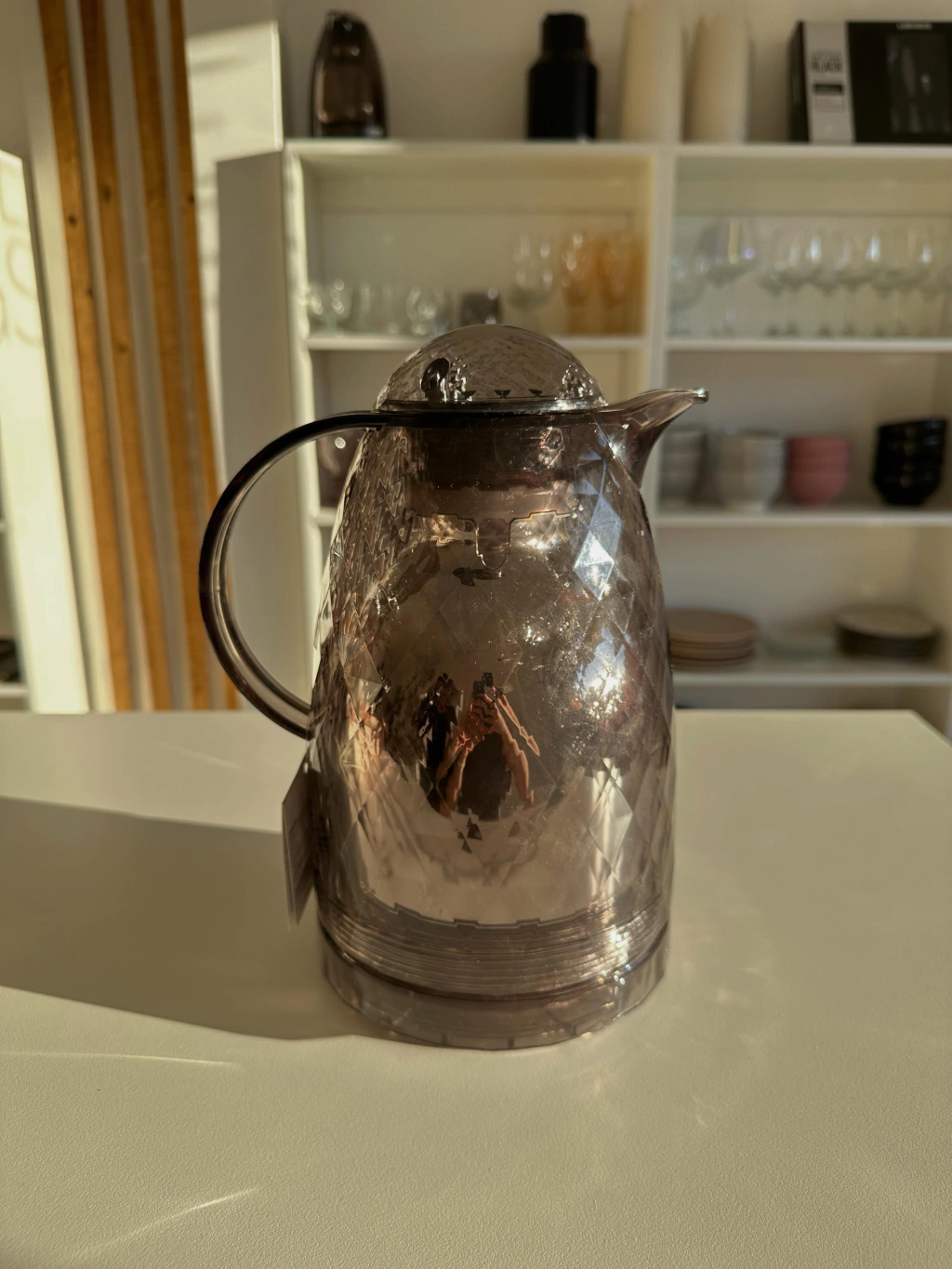 Jarra térmica de acrílico fume con ampolla de vidrio espejada.